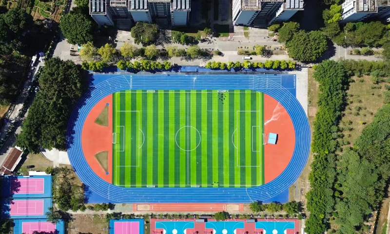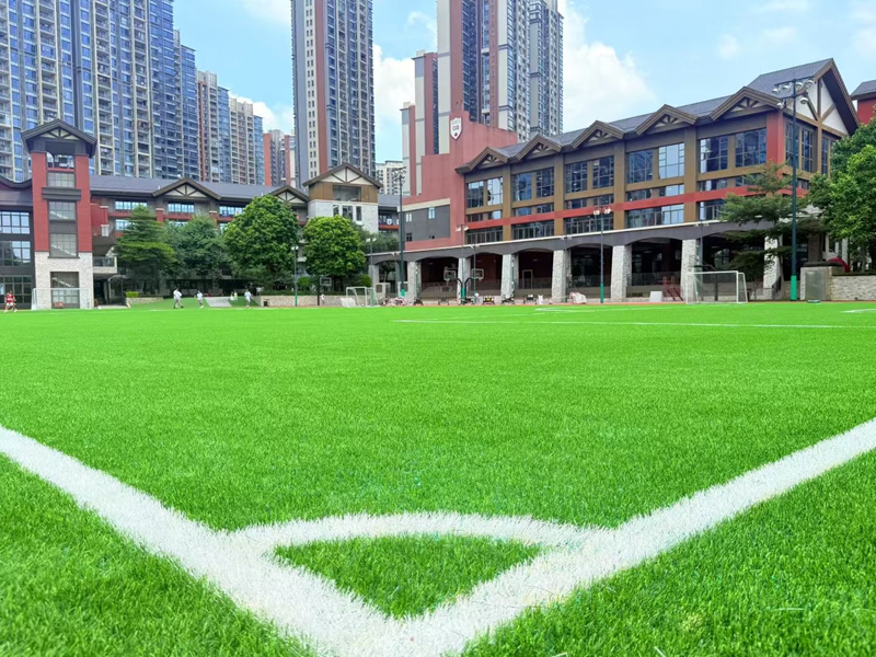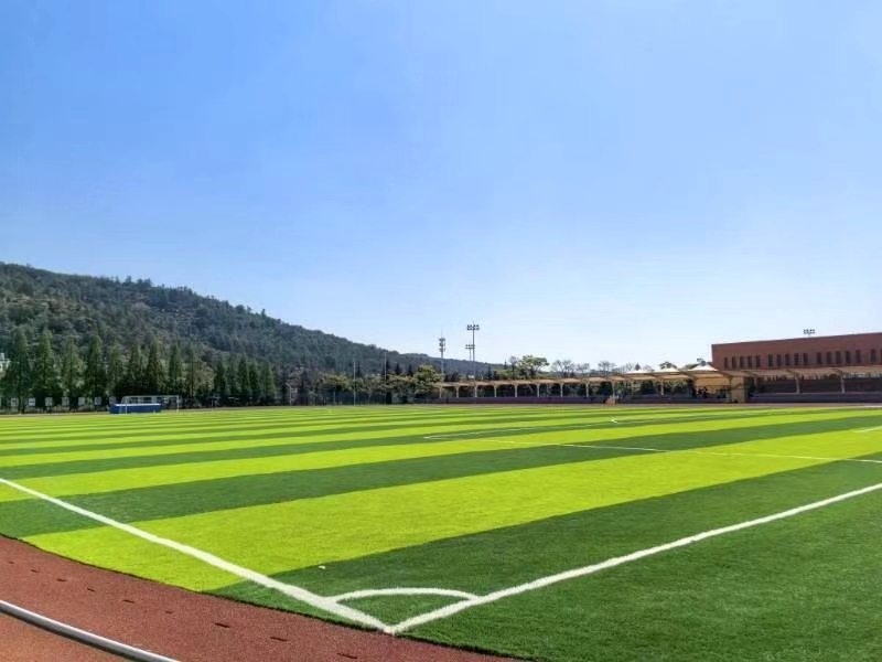 Rubber particles should be evenly spread, and angular sand particles should not be poured between the grass seedlings.